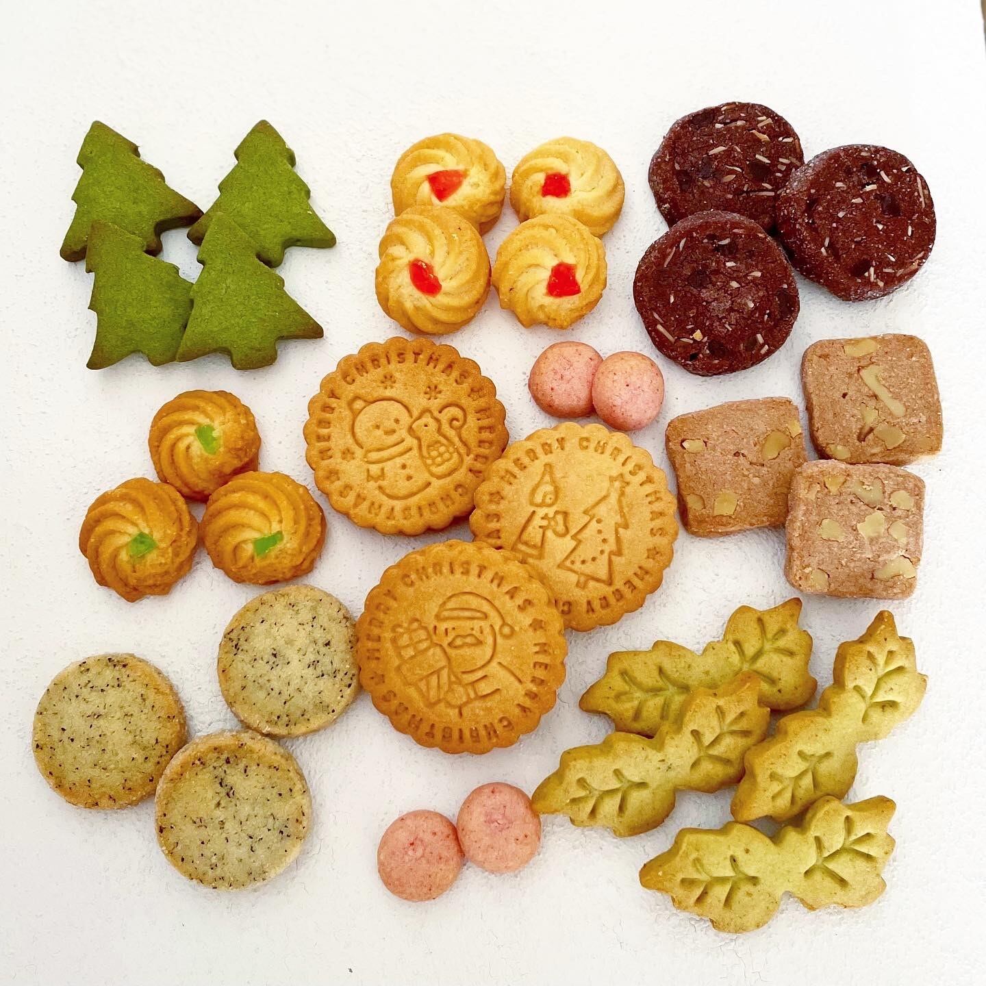かわいいクリスマスモチーフのクッキーに、ビターチョコ・いちごチョコ・抹茶チョコをそれぞれサンドしたクッキー